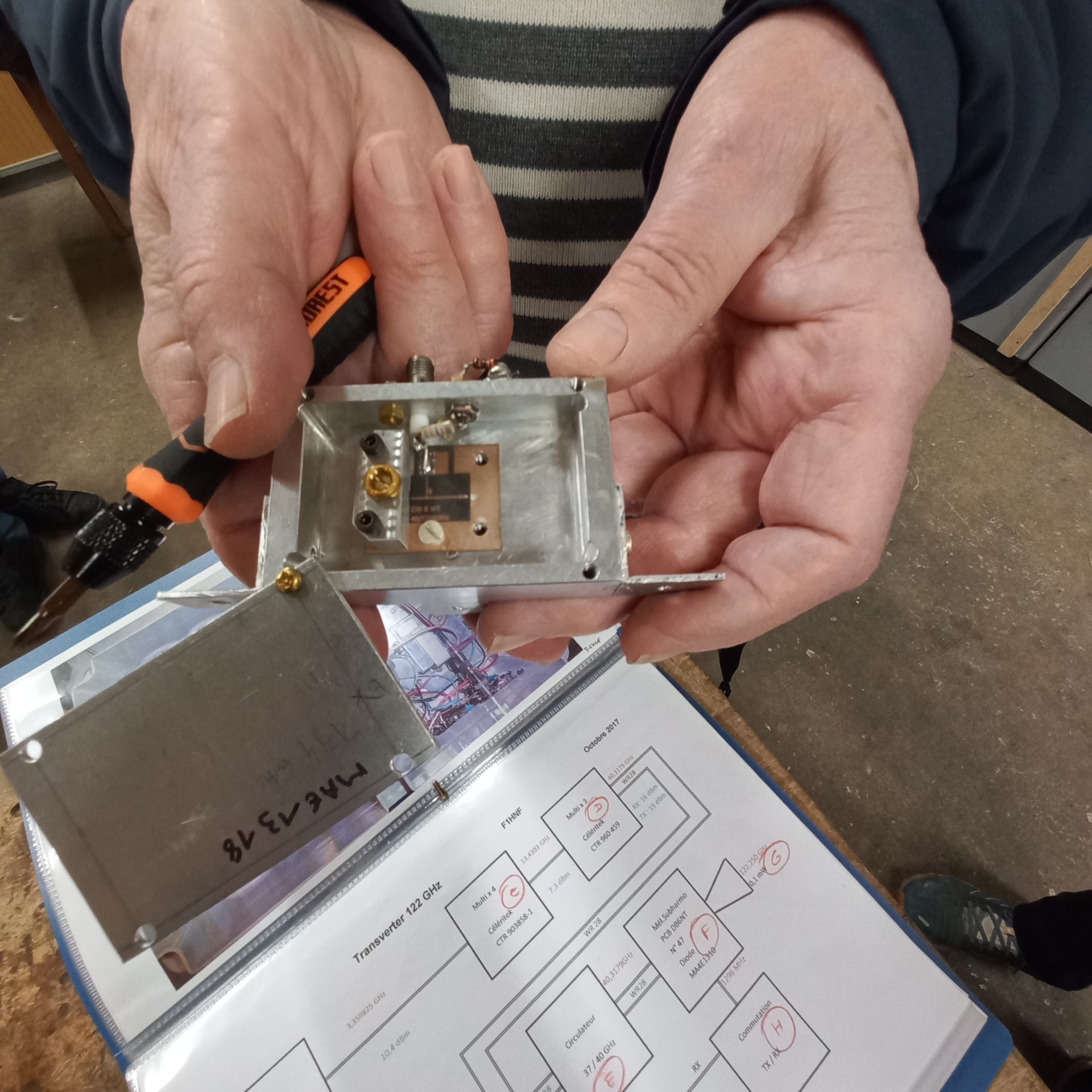 Jean-Louis F1HNF, hypériste bien connu dans le milieu, a également pu nous montrer le mélangeur de son transverter 1296 MHz vers 122 GHz, réalisation 100% OM.