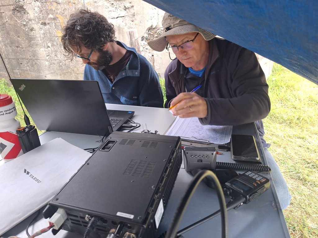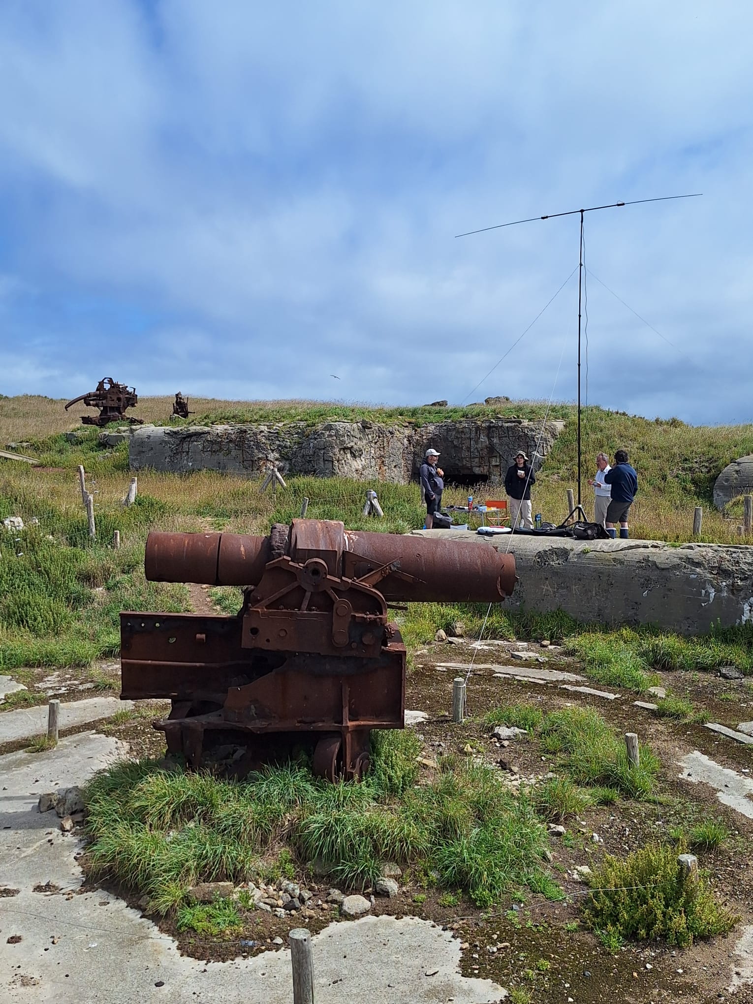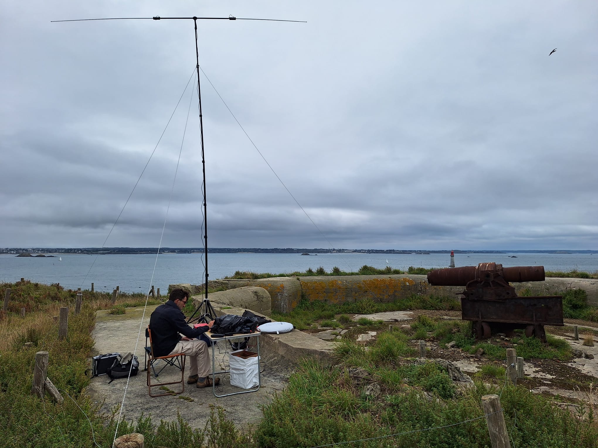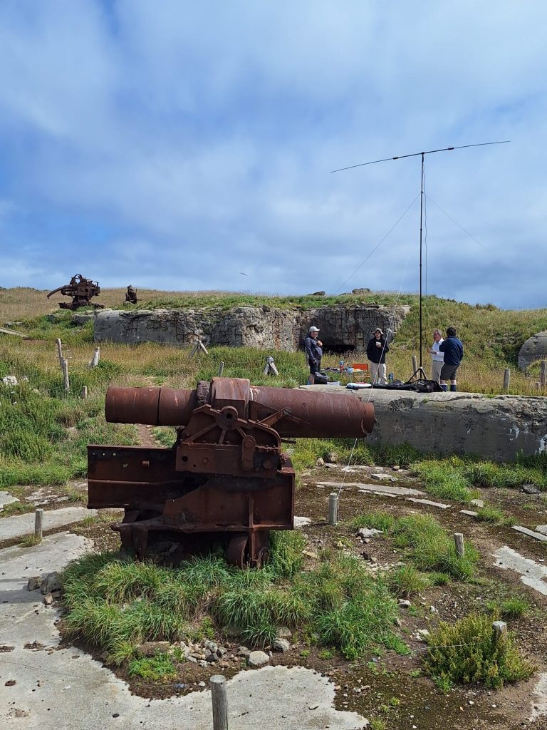 La station du « canon », installée dans le nid de canon 194 mm du sud-ouest, utilisant un « buddipole » monté sur mât portable et un IC-7000.