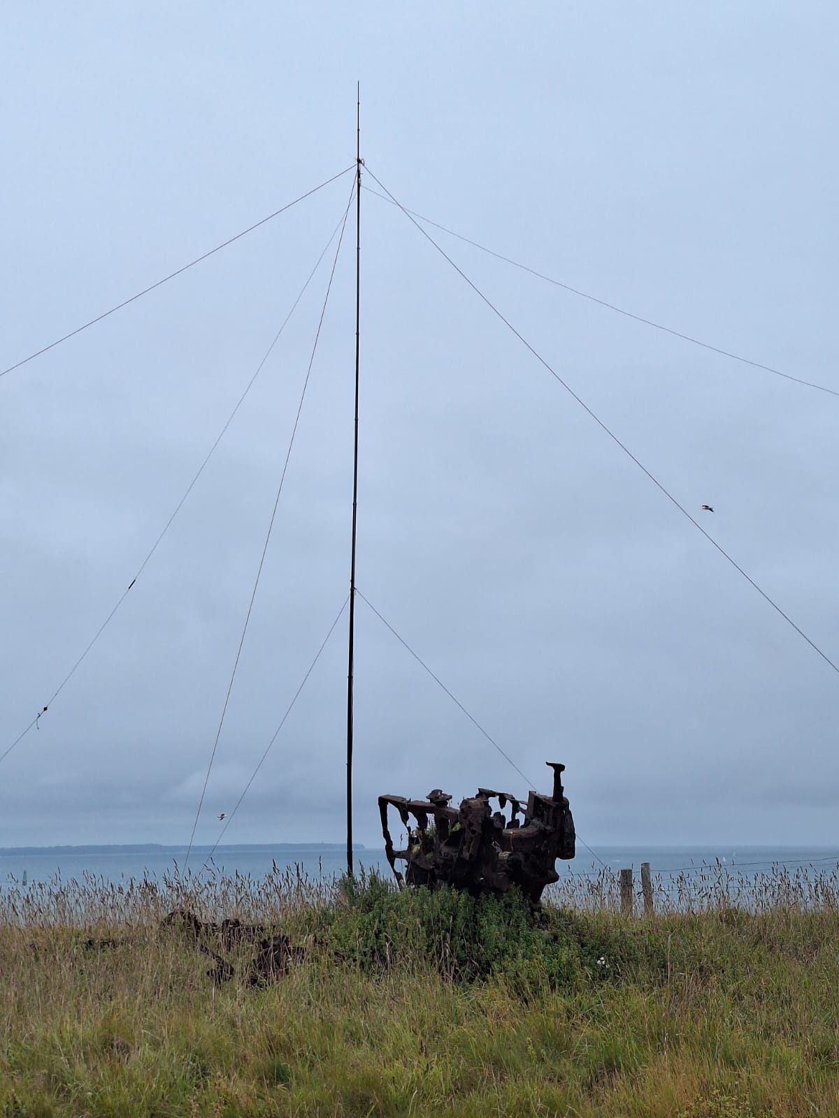 La station du « bunker », installée au pied de l’ancien poste de contrôle de tir avec une antenne endfed multi-bandes montée en V inversé perchée sur un mât Spiderbeam de 12 m et un FT897.