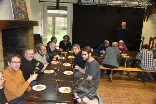 Quelques instants plus tard, après l’arrivée des OM de Vitré par covoiturage, les participants étaient bien décidés à échanger sur les activités radios des derniers mois autour d’une part de la fameuse galette des rois. Mais avant cela, le Président (François F5SDH) a profité de quelques minutes de silence de l’assemblée pour énoncer ses vœux pour cette nouvelle année 2026.