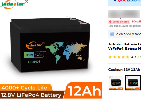 Batterie LiFeP04 12,8v 12Ah . Légère, efficiente, concluant.
